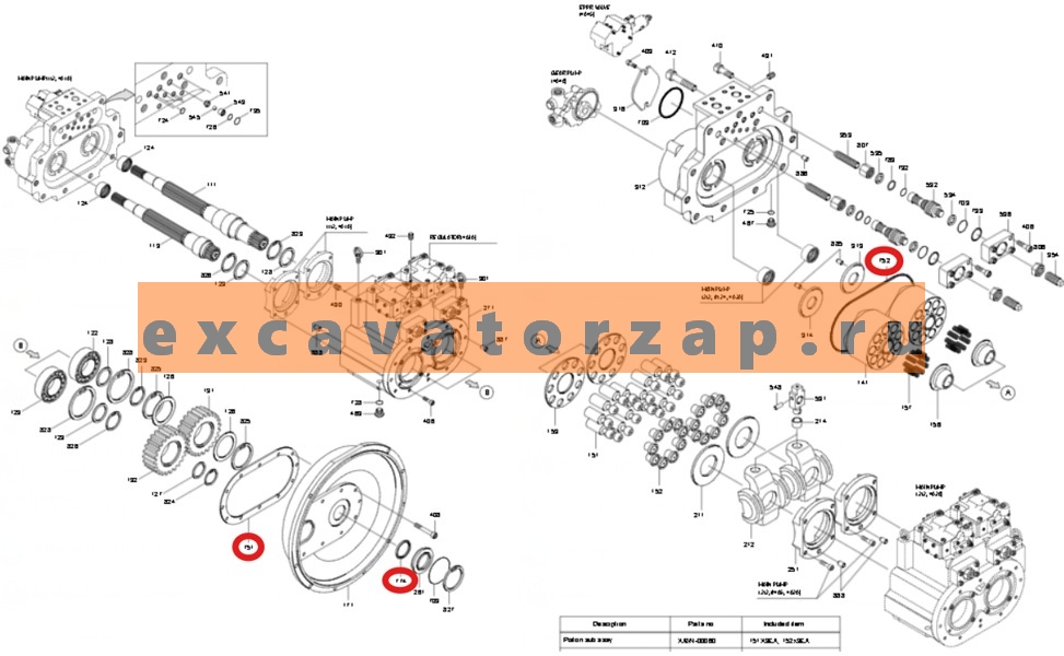 Ремкомплект гидронасоса 31Q6-15320 + XJBN-00763 + XJBN-00764 (уплотнения + прокладки) экскаватора HYUNAI R210W9S